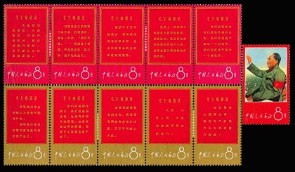 中国的邮票设计与发行也受到了“文化大革命”的影响。1967年4月19日,各报刊登新华社发的一条消息:“闪耀着毛泽东思想灿烂光辉的纪念邮票《战无不胜的毛泽东思想万岁》于20日起在首都发行。这套邮票是邮电部为庆祝北京市革委会的成立,为满足亿万人民的渴望,决定提前发行的。”这套邮票是我国取消志号后发行的第一套邮票。