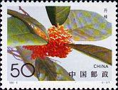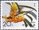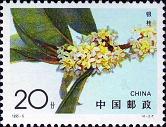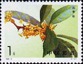 P.S. 桂花是中国传统十大名花之一,也是中国特有植物。桂花品种一般归纳为“金桂”“银桂”“丹桂”和“四季桂”四个主要品种群。桂花为常绿灌木或小乔木,树形美观,花朵如米粟,簇生于叶腋,芳香飘逸,是中华民族喜爱的传统名花。1995年4月14日,为了介绍中国珍贵的植物资源,发行此套特种邮票。