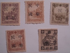 20分,淡棕,出现两种变体票:倒盖、骑缝加盖。